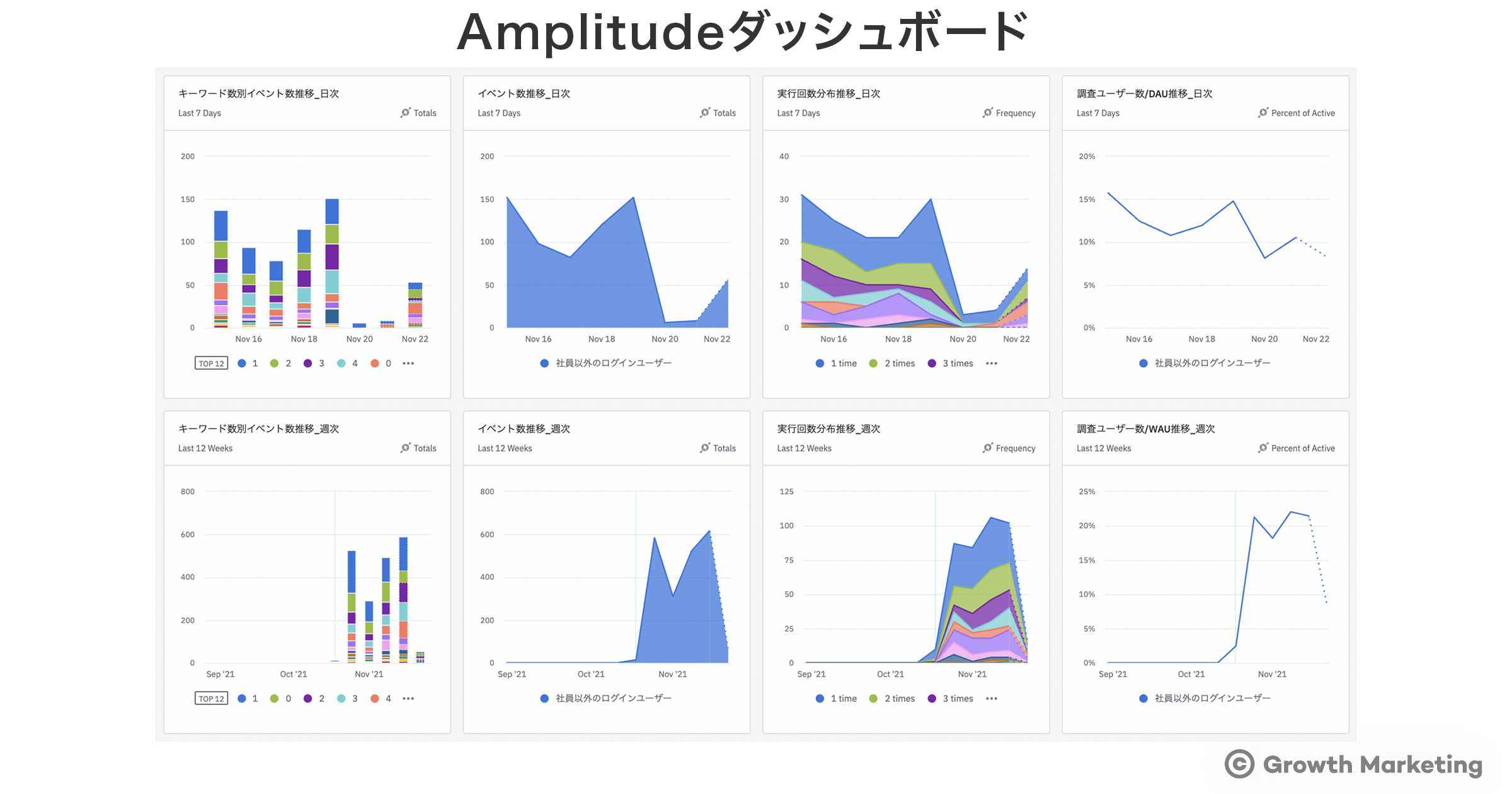 四半期や月次では数値とダッシュボードを追って、上層部に出せるデータの整理を行っています。週次では先行指標レベルで、Amplitudeでリリースの線を設定し、自分たちのアクションを反映させながら変遷を見ています。