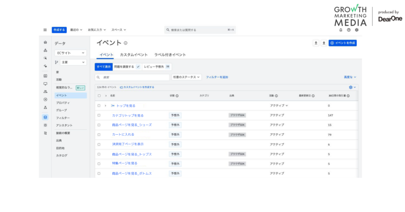 データマネジメントという観点で言うと、「データ」という機能です。その中の「イベント」は、よくチェックしていますね。「新しいイベントが入ってきているということは、どこかの部署で新しくこのイベントを実装したんだ」といった形で、見ています。