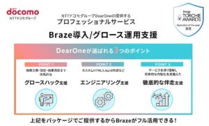 次世代MAツールBrazeをご紹介。当社では3つの軸でBrazeの導入・運用をご支援。1.施策立案・実行・効果測定 2.HTML作成などのエンジニアリング支援 3.伴走型でグロースを支援