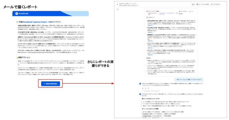そんな「会話のような分析体験」を実現したのが、AmplitudeのAIエージェントであり、AIがレポートをまとめてくれている間、私たちは企画や構想を練る時間に充てられるようになりました。