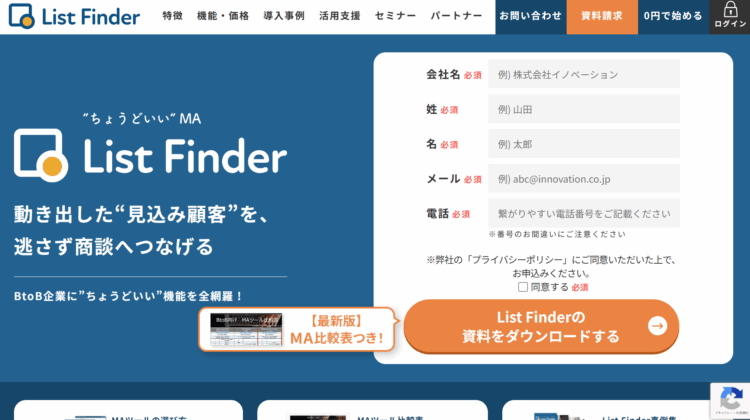 List Finder BtoB 低〜中 BtoB特化、手厚い導入・運用サポートが標準