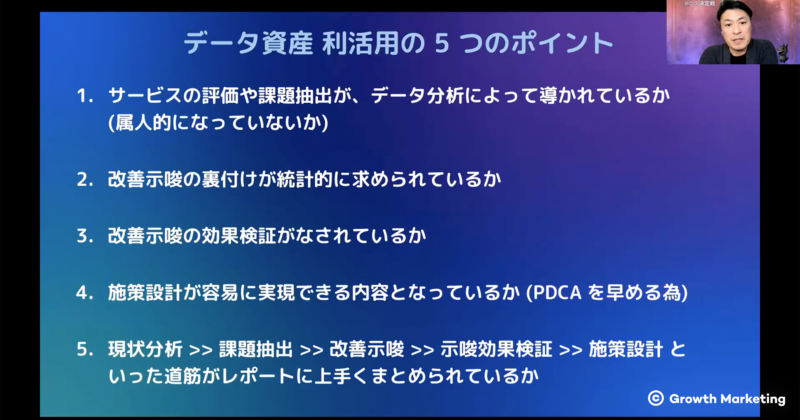 最後にAmplitudeカントリーマネージャーより「データ資産利活用の5つのポイント」が紹介されました。