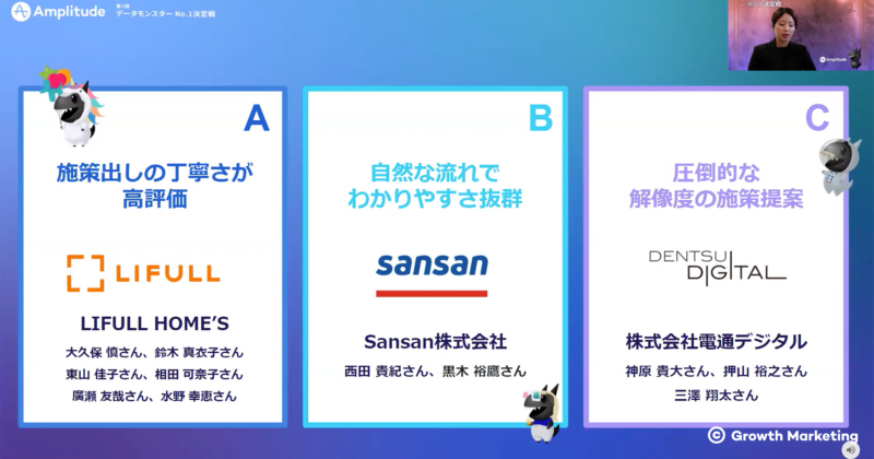 日本では初となる、Amplitude主催プロダクトアナリティクスの実務能力を競うデータ分析コンテスト「第1回 データモンスターNo.1決定戦」が2022年1月26日ライブ配信にて開催されました。