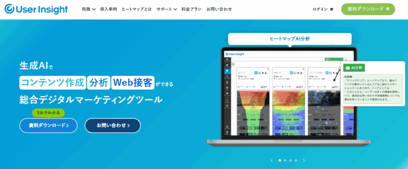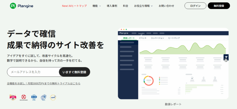 初心者でも直感的に使える操作性と、日本企業による手厚いサポートが受けられます。特に中小規模のWebサイトを運営しており、コストを抑えながらサイト改善の第一歩を踏み出したい企業に最適なツールといえるでしょう。