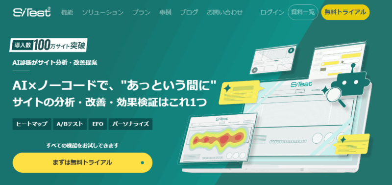 SiTestは、株式会社グラッドキューブ提供のLPO(ランディングページ最適化)ツールです。70万サイト以上の導入実績があり、コンバージョン率向上に必要な機能をオールインワンで提供しています。