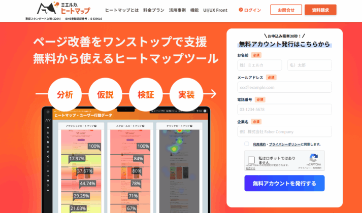 ミエルカ ヒートマップは、株式会社Faber Company提供の、UI/UX改善に特化したヒートマップツールです。