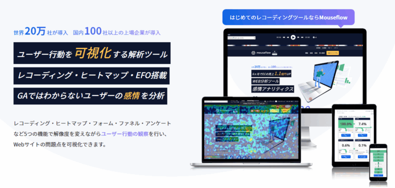 | Mouseflow | 6種ヒートマップ/完全録画/ファネル/フォーム分析 | 無料〜44,891円/月 | セッションリプレイが非常に強力 | ユーザー行動を細かく把握したい企業 | ▶︎詳細を見る |