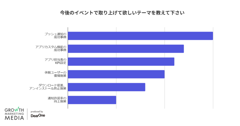プッシュ通知の成功事例や、アプリカスタム機能の成功事例、アプリ担当者のKPI等、毎日の実務に関わるものから自分の仕事の成果を測るものまで、アプリ担当者ならではの意見をお聞きできました。