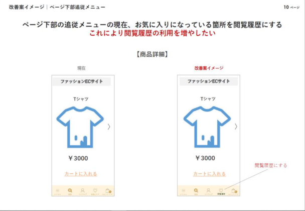 そしてAmplitudeのパスファインダーチャートを使用し、閲覧履歴はどこから閲覧しているか?を調べると、商品詳細が多いことがわかりました。そこで生まれた改善案が、「お気に入り」を「閲覧履歴」に変更する事でした。