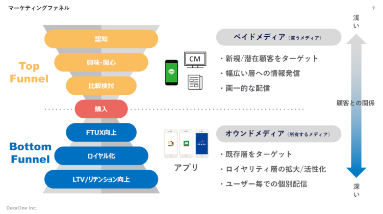 ユーザーLTV向上の施策をマーケティングファネルで見ていきます。