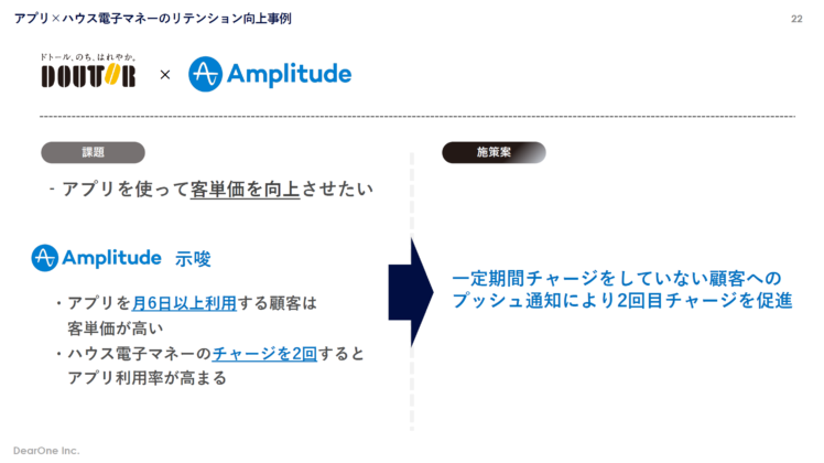 ロイヤルカスタマー獲得・育成に効果的なハウス電子マネー機能をアプリに搭載した上で、より使って頂くために行動分析から導き出し、UIの意味ではより使いやすく分かりやすくする。そしていつ・誰に伝えるか、その最適なタイミングを施策として打ち出せれば、ハウス電子マネーをより活用して頂けるのではと思いました。