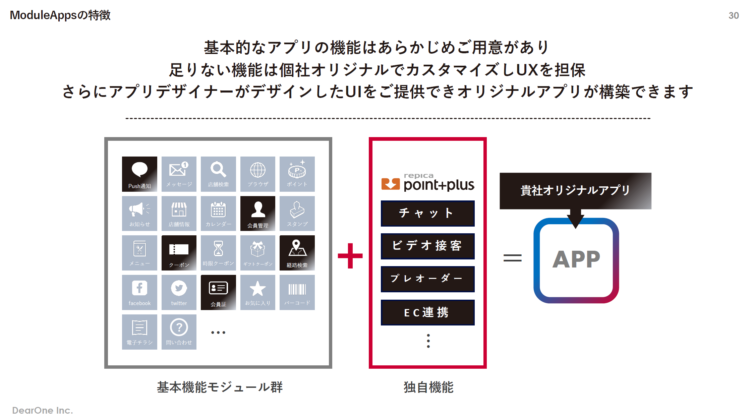 プッシュ通知やクーポン機能はアプリ上でベーシックな機能ですが、逆に、御社だから提供できるModuleApps独自のパーツはありますか。