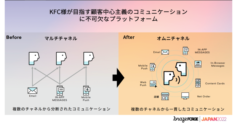 2022年7月12日(火)に東京ポートシティ竹芝ポートホールにて、カスタマーエンゲージメントの最先端を体験するFORGE Japan 2022がBraze社主催で開催されました。同イベントは、マーケターやエンジニアが次世代CRMを活用しながら顧客体験を高めLTV向上を実現する顧客中心の思考・戦略・方法を学ぶことができるイベントで、中盤でおこなわれた日本ケンタッキー・フライド・チキン株式会社の取り組みを紹介するセッションを取材しましたのでその模様をお伝えします。