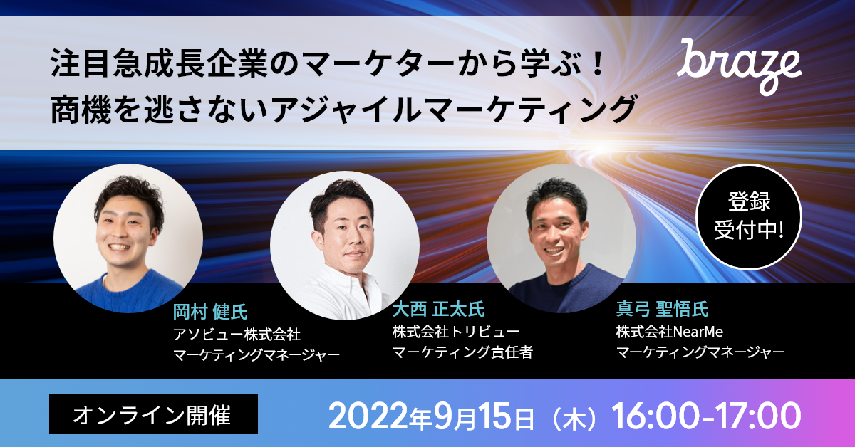 本セミナーでは、急成長企業のマーケターの皆様にご登壇いただき、スタートアップ企業にも多く導入されているBrazeを採用した背景と短期間での活用や成果を出された内容をお話しいただきます。