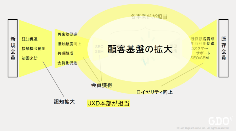 その環境下でまず、ユーザー行動視点でマーケティングを考え、顧客体験を向上させるためのUXD(User Experience Design)本部を社内の中心に立ち上げました。