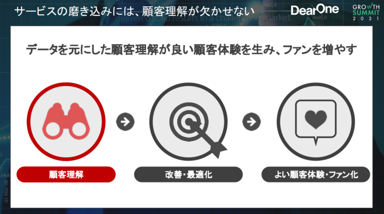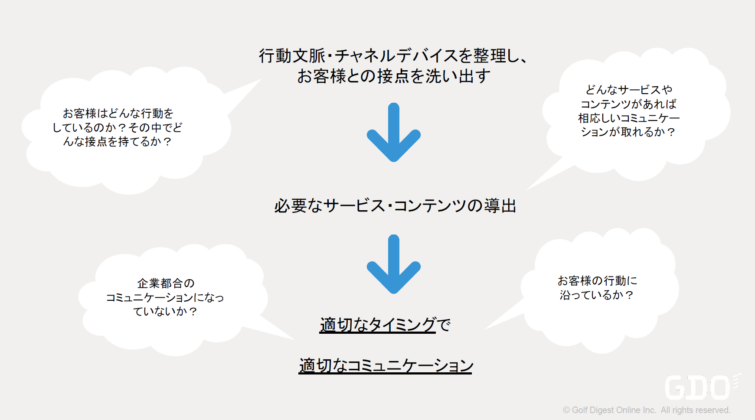 その中で「顧客視点になる」とは、データを集めた上で顧客の行動や思いをできるかぎり読み取ることなのです。顧客視点に立って物事を考えるのが大前提です。