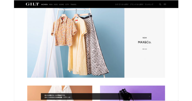 それぞれの特徴として、「GILT」は高級嗜好の方やハイブランド、ラグジュアリーなブランドを求める方をターゲットにエッジの効いたブランドを世界中からセレクトしており、売上の8割をファッションが占めています。
