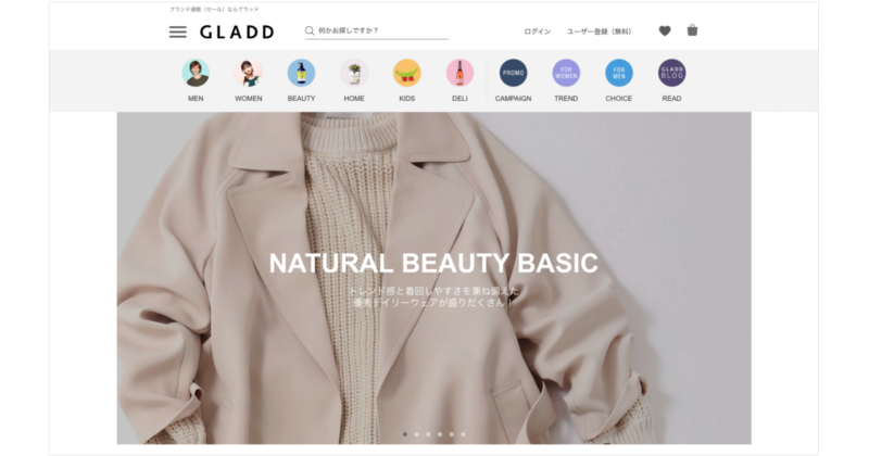 「GLADD」は、デザイナーズブランドやセレクトショップなどを中心に取扱う一方で、ファッションの視点から感度の高いライフスタイル全般の商品提案をしているサービスです。そのため、売上の半分を占めるファッションに次いでホームグッズが15%、コスメが10%と高いシェアを占めています。